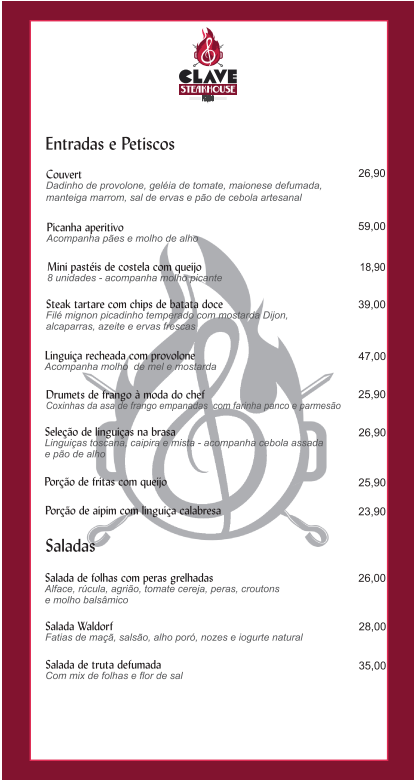 Welcome to Clave Steak House - Penedo, a culinary gem nestled in the scenic Itatiaia region of Brazil. The menu is a delightful fusion of flavors, showcasing a diverse selection that caters to all tastes. From succulent cuts of meat at their renowned churrascaria to vibrant seafood dishes, every plate tells a story of passion and quality.